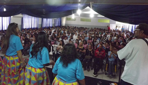 Auditório da Escola Estadual Alfredo Sá: presença de 450 alunos do Ensino Médio. Participação especial da cantora e psicóloga Beatriz Farias.